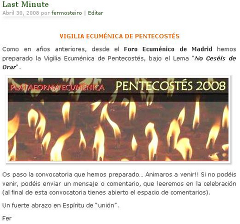 Como todos los espacios de «Odres Nuevos», éste también está abierto a vuestros comentarios y, en este caso, no sólo a vuestros comentarios; sino que también podéis enviar aquellos acontecimientos de los que tengáis noticia: conciertos, charlas, encuentros, etc…, para que la gente se pueda apuntar, aún en el último momento.