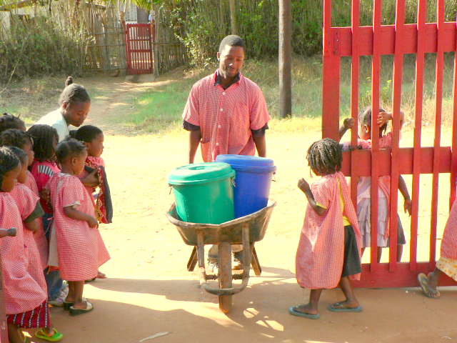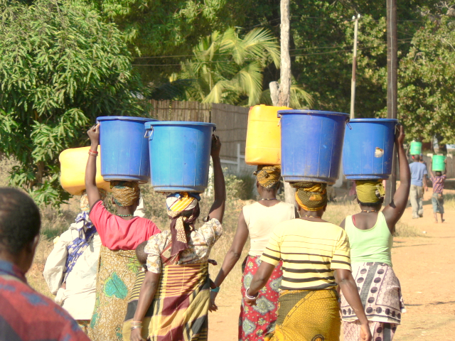 La Escolinha también necesitaba surtirse de Agua, para la comida, para los barreños de lavarse las manos…