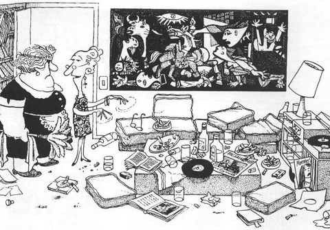 Te puedes creer que al principio no me había fijado en el Cuadro «El Guernica», es decir, que no me había fijado que también había ordenado el cuadro, jijijijijiji. Y me estaba diciendo, ¿dónde está la gracia? y luego, cuando me he dado cuenta, no podía parar de reír. Creo que he contagiado a todo el Despacho.