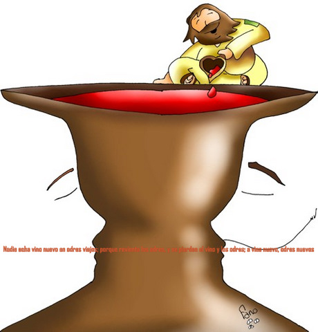 Nadie echa vino nuevo en odres viejos; porque revienta los odres, y se pierden el vino y los odres; a vino nuevo, odres nuevos. »