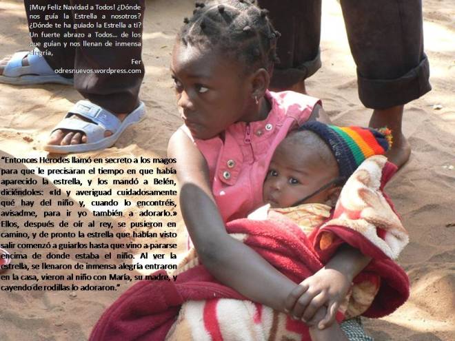 ¡BUENAS TARDES Y FELIZ JORNADA! ¡FELIZ NAVIDAD Y UN EVANGÉLICO AÑO NUEVO! ZORIONAK ETA URTE BERRI ON! MERRY CHRISTMAS AND A HAPPY NEW YEAR! Es el momento de agradecerte todo el bien que haces desde tu página. Desde luego que tú eres una estrella que nos llevas a Jesús y que en esa preciosa postal con niños de Mozambique nos recuerda lo esencial de estas fiestas. Un fuerte abrazo: