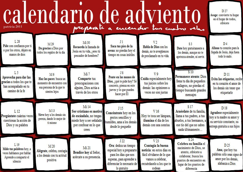 Hola Fer….. te dejo el link de la diocesis de Valencia que ha hecho otro calendario para adviento un poquillo mas completo que tambien os puede ayudar. Un besote y gracias por este… lo tengo en el frigorifico y cada dia al levantarme me ayuda un monton a empezar el dia con un compromiso!! Marta Gª-Pulgar Perezagua
