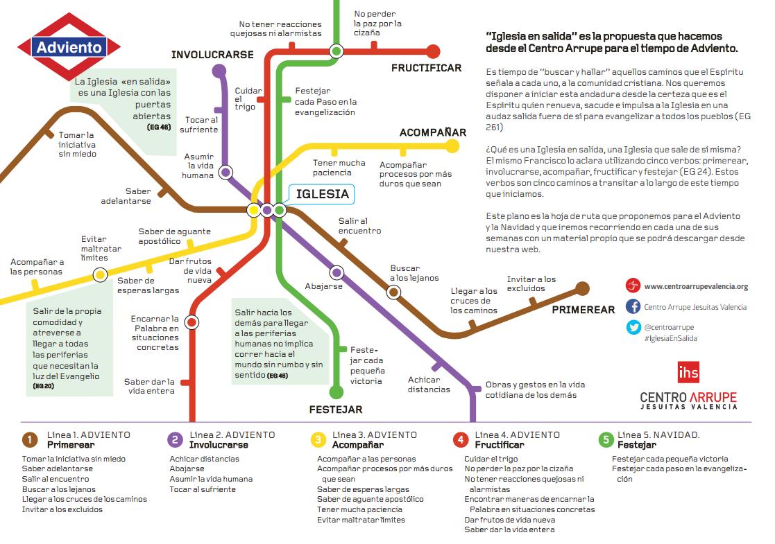 Me envía José Antonio Ballesteros un «Plano de Metro» muy especial, preparado por el Centro Arrupe – Jesuitas de Valencia, que me ha parecido muy interesante para continuar con nuestra preparación de este Tiempo de Adviento.