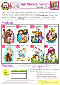 Como sabéis la venta de estas tejas irá destinada en su totalidad a dos proyectos: El Proyecto COV´s, que gestiona Fundação Encontro en Mozambique, para niños y niñas huérfanos y vulnerables, en el que participa la Obra Social Odres Nuevos, y el Proyecto de promoción de la mujer gitana en exclusión, Kelli Majarí, que se desarrolla en la barriada marginal de los Asperones (Málaga).