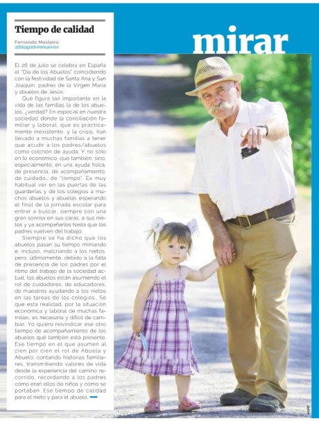 Hoy, 26 de julio, se celebra en España el día de los Abuelos coincidiendo con la celebración de Santa Ana y San Joaquín, padres de la Virgen María y abuelos de Jesús.