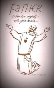 ”Padre mío, me entrego en vuestras manos; Padre mío, me abandono a Vos; Padre, Padre mío, haz de mi lo que os plazca; sea lo que hagáis de mí, os lo agradezco; gracias de todo, estoy dispuesto a todo; lo acepto todo; os agradezco todo; con tal que vuestra Voluntad se haga en mí, Dios mío; con tal que vuestra Voluntad se haga en todas vuestras criaturas, en todos vuestros hijos, en todos aquellos que vuestro Corazón ama, no deseo nada más Dios mío; en vuestras manos entrego mi alma; os la doy, Dios mío, con todo el amor de mi corazón, porque os amo y porque esto es para mí una necesidad de amor: darme, entregarme en vuestras manos sin medida; me entrego en vuestras manos con infinita confianza, pues Vos sois mi Padre…”
