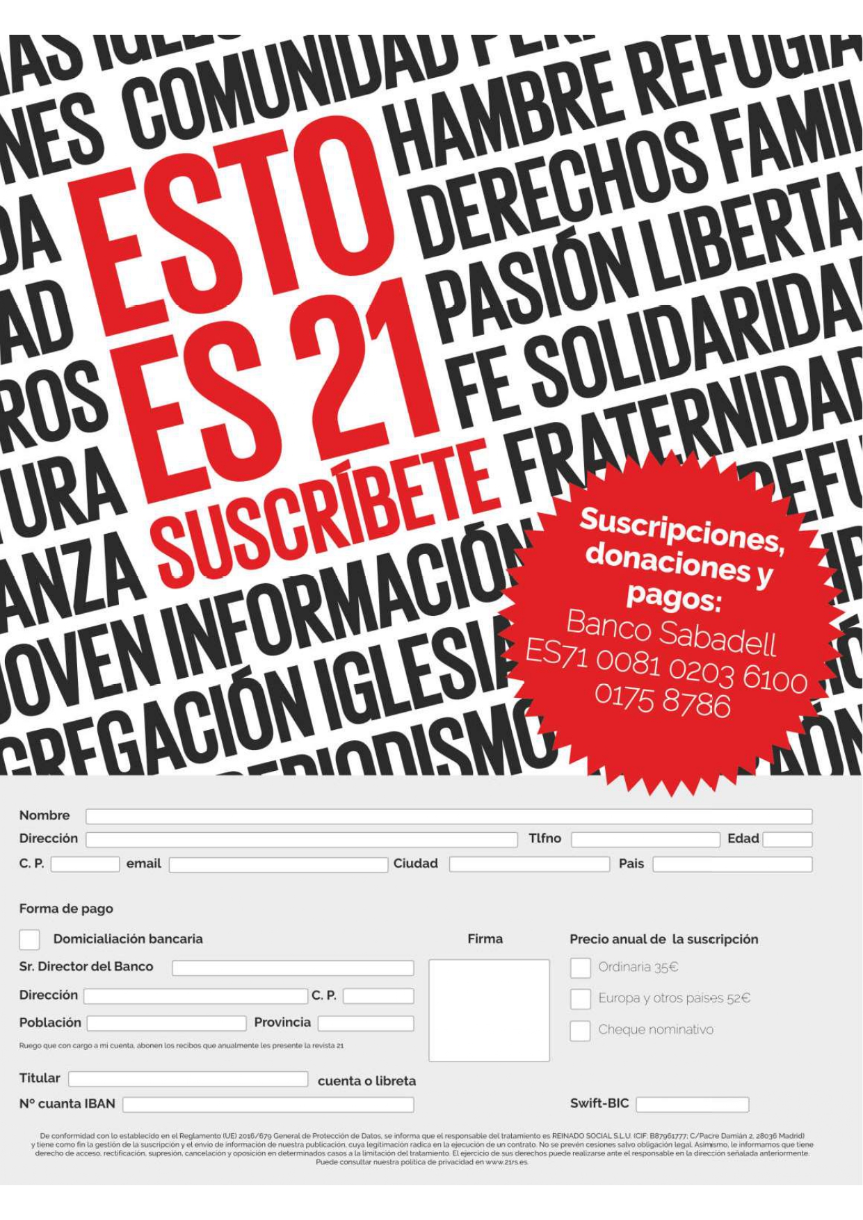 Como en otras ocasiones, aprovecho para recomendaros que os suscribáis a Revista21, pues podréis tener a mano muchos artículos, entrevistas, documentos… todos actuales y todos con rigor, fondo y profesionalidad.