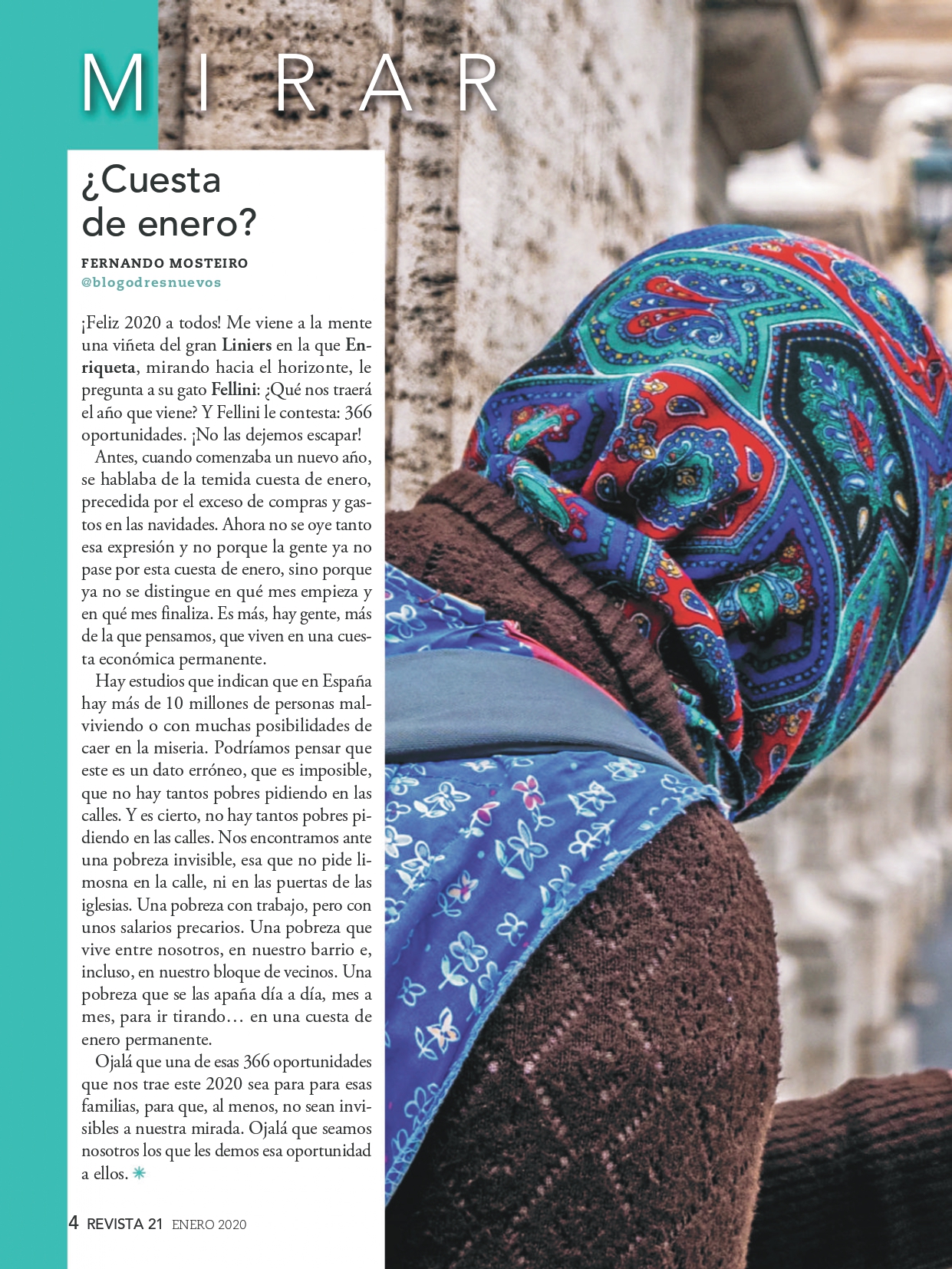 Como todos los meses os comparto mi comentario en la sección “Mirar“, de Revista21. Este mes en relación a la «cuesta de enero»; esperando que os guste y os toque en algo.