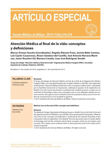 Documento elaborado por el Grupo de Trabajo de Atención Médica al Final de la Vida de la Organización Médica Colegial (OMC) y la Sociedad Española de Cuidados Paliativos (SECPAL).