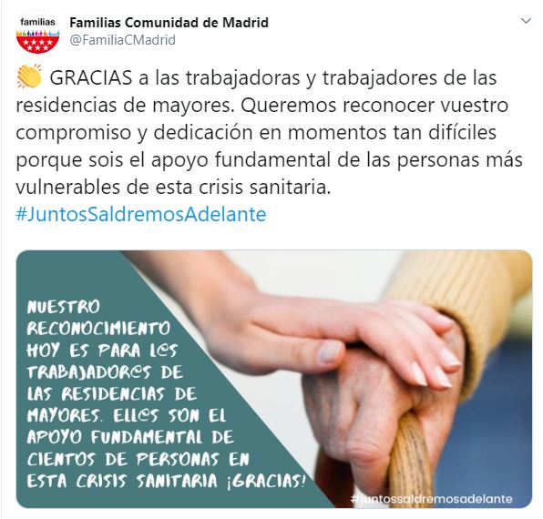 Comunicado de la Comunidad de Madrid en favor de los Trabajadores de las Residencias de Mayores.