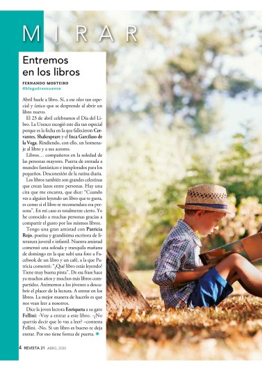 Como todos los meses os comparto mi comentario en la sección “Mirar“, de Revista21. Este mes con el título: Entremos en los libros. Como siempre, espero que os guste y os toque en algo.