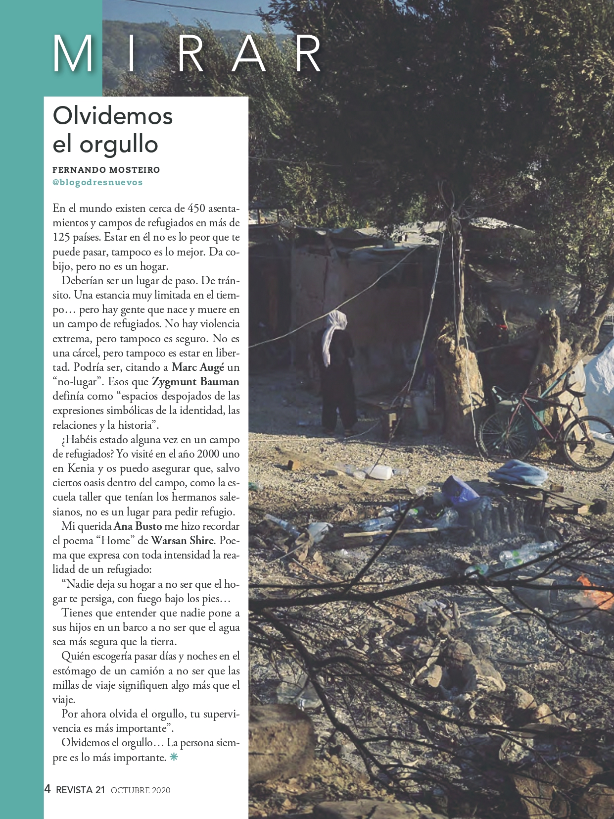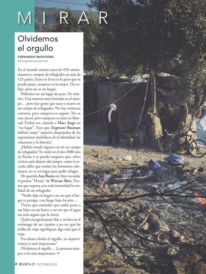 Como todos los meses os comparto mi comentario en la sección “Mirar“, de Revista21. El comentario de este mes de octubre enfocado al drama de los refugiados. Como siempre, espero que os guste y os toque en algo.