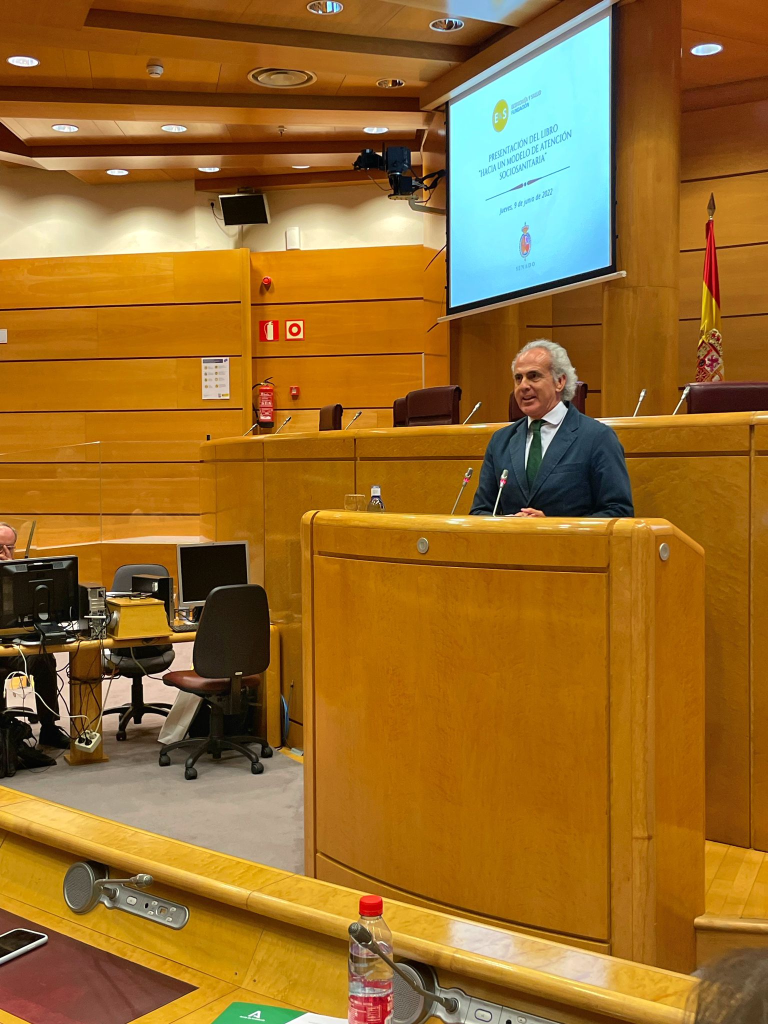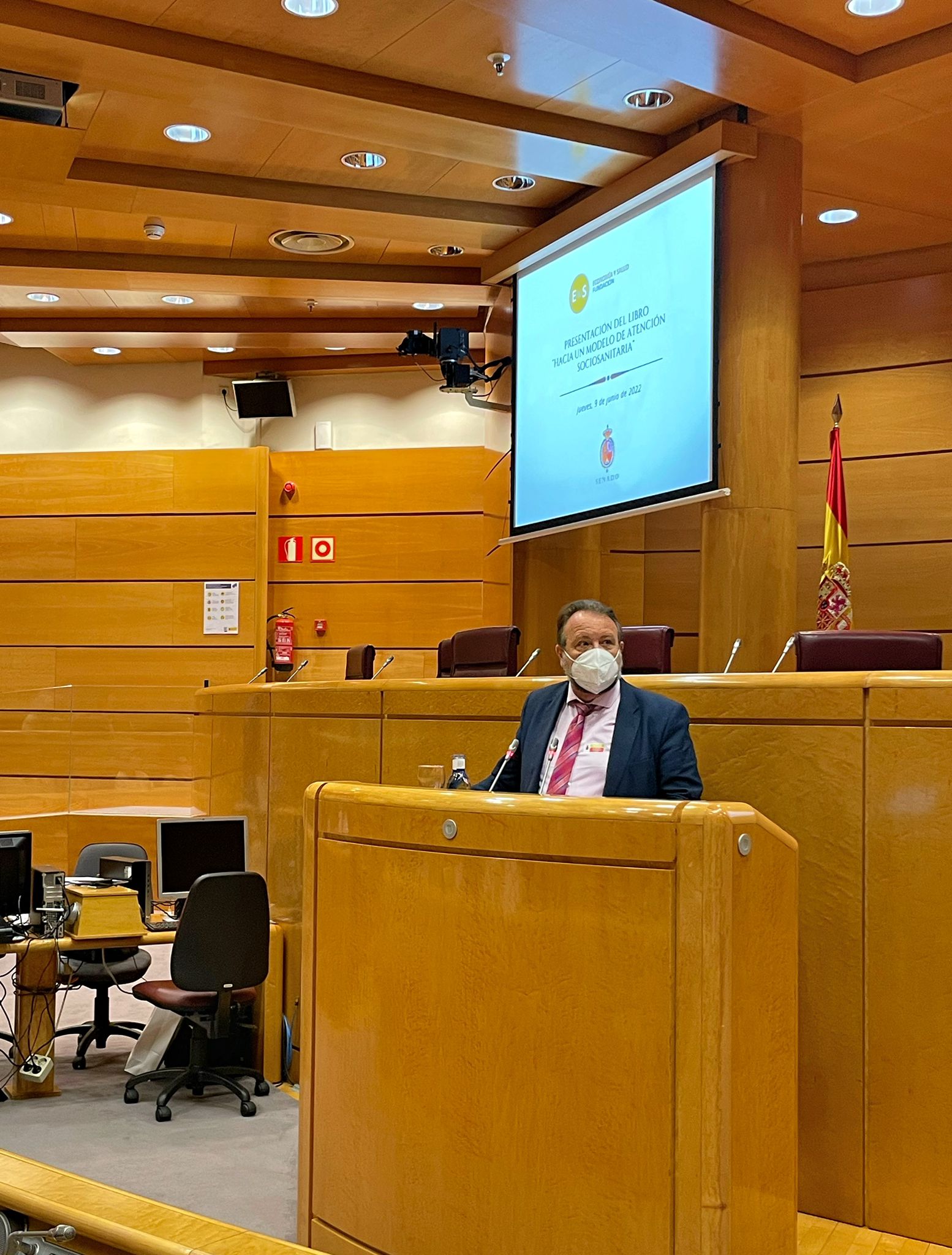 La presentación del libro, que ha corrido a cargo de D. José Ignacio Nieto, coordinador del proyecto y Miembro del Comité Científico de la Fundación Economía y Salud, ha sido muy interesante. José Ignacio ha recalcado la necesidad de diferenciar entre centros sociales y centros sanitarios (eliminando el término Sociosanitario para referirnos a las Residencias y a sus trabajadores, ya que genera confusión y no está sustentado en ninguna base jurídica) y mejorar el engranaje y relación entre los Centros Sociales y la Sanidad Pública, especialmente en el área de Atención Primaria.