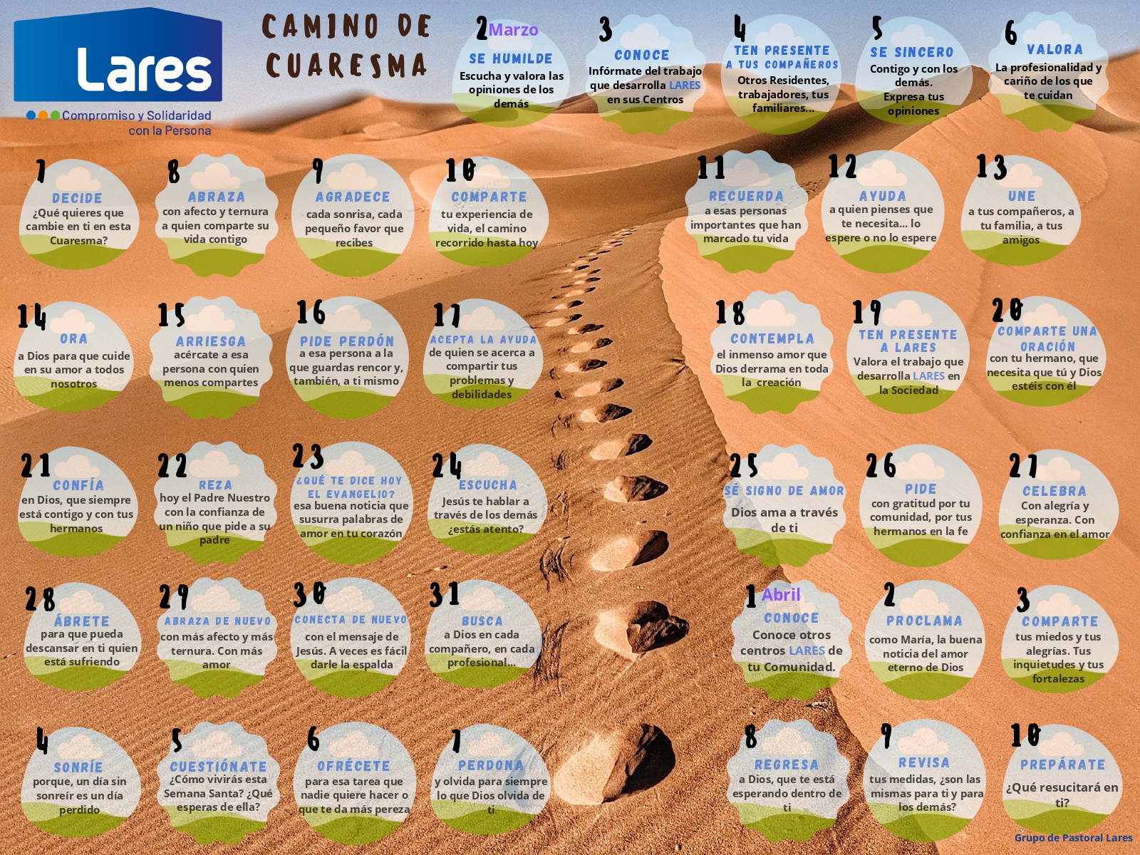 Desde el Grupo de Pastoral LARES hemos creado un Calendario de Cuaresma adaptado a la realidad de nuestros centros.