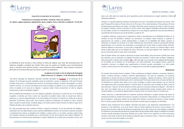 Desde el Grupo de Pastoral de Lares estamos preparando una serie de recursos para vivir más en profundidad el Tiempo de Adviento. Hemos preparado unas Oraciones para cada uno de los 4 Domingos de Adviento, que os iremos enviando a lo largo de este mes.