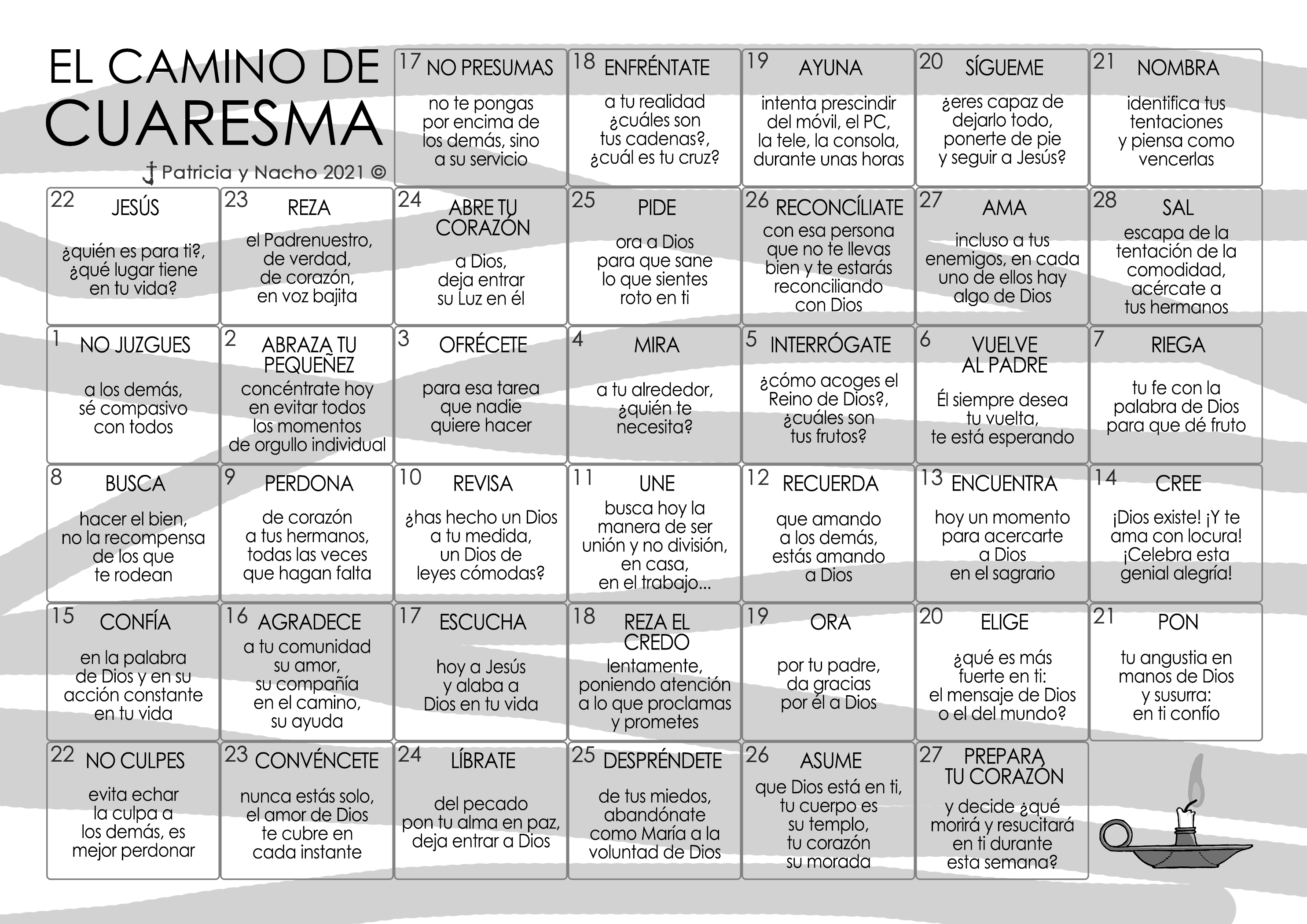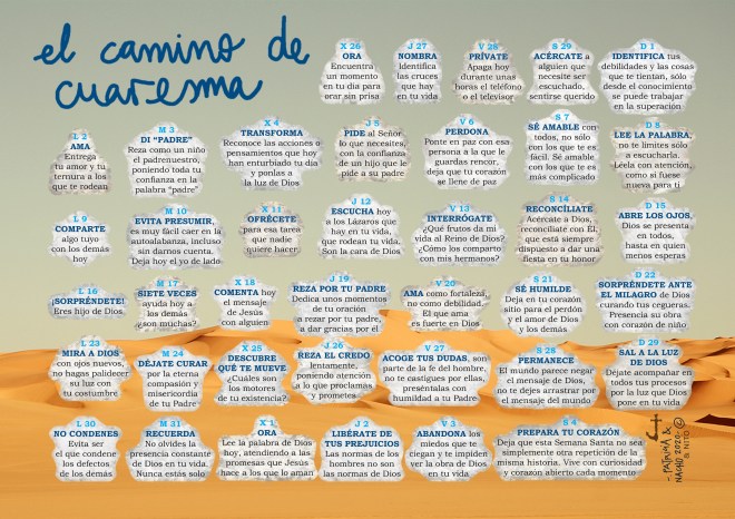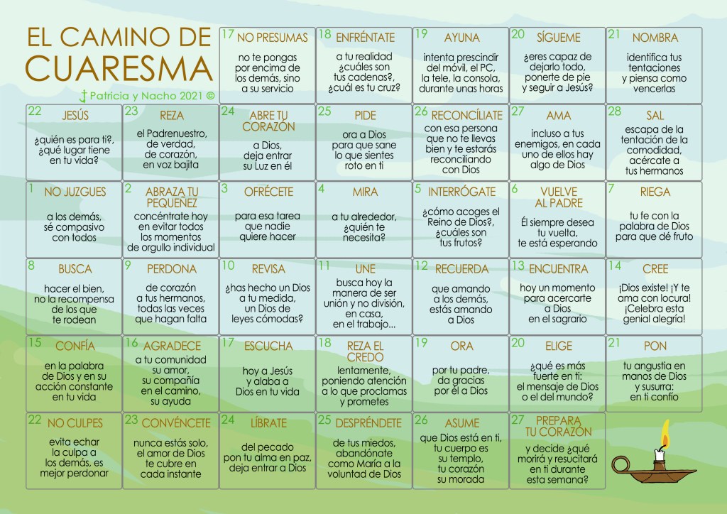 Como todos los años, ya tenemos el Calendario de mis queridísimos Patricia Rojo y Nacho Pangua para vivir el Camino de Cuaresma… Todo ello gracias a la coordinación de Isra.