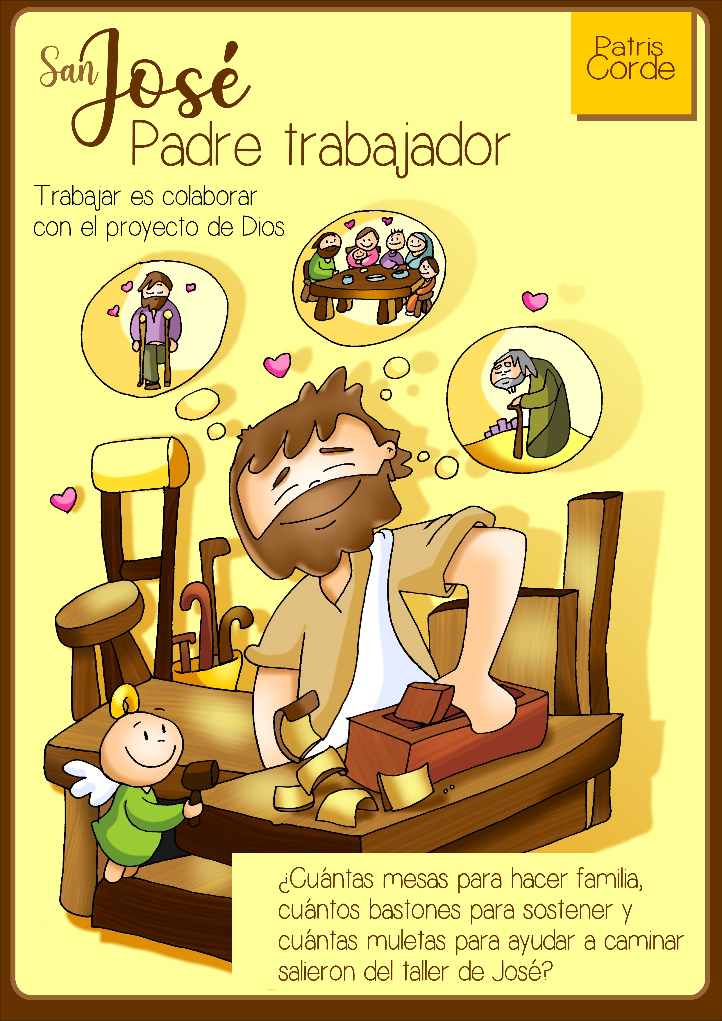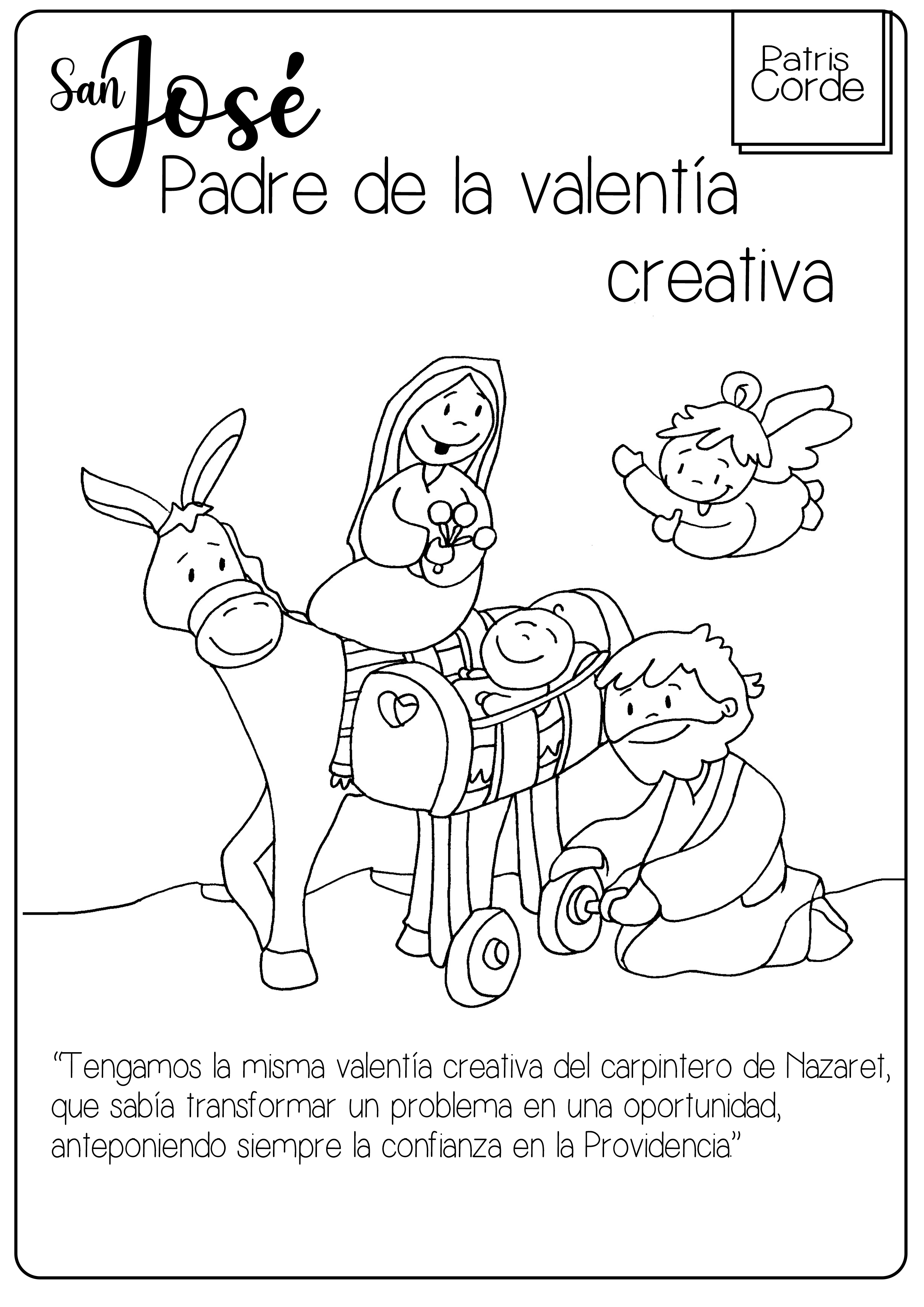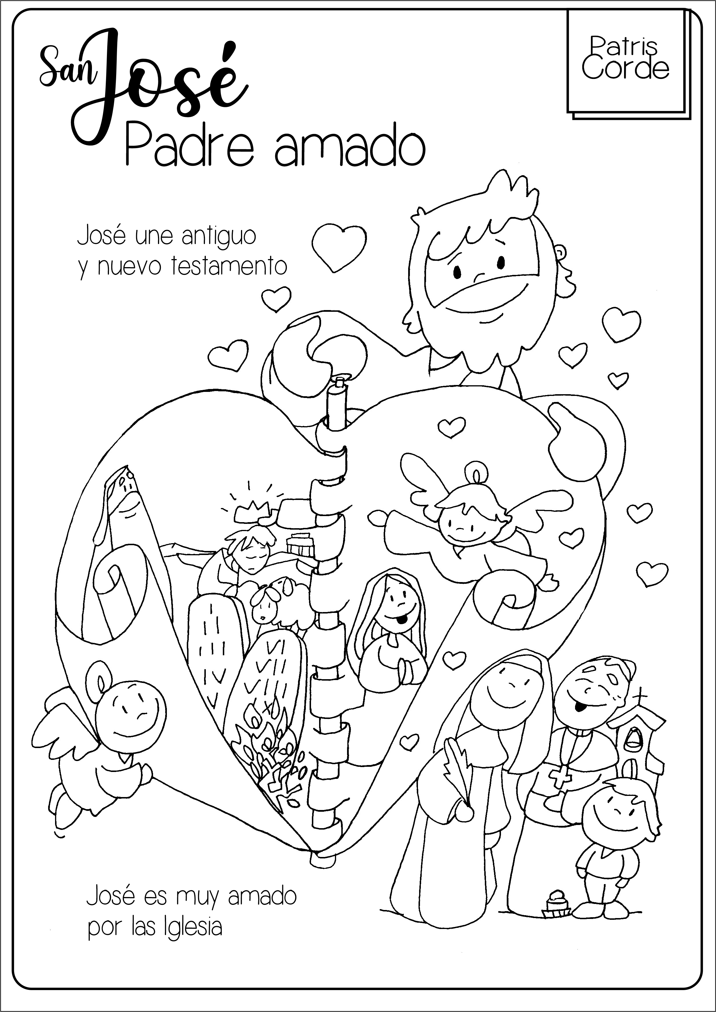 Os envío los dibujos de SAN JOSÉ nacidos de las reflexiones de la PATRIS CORDE… os lo comparto a color y en blanco y negro con texto y también el PDF en mudo por si queréis traducirlo.
